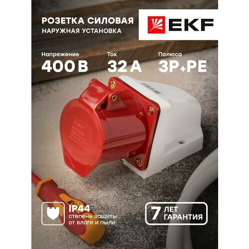 Розетка стационарная наружная 124 3Р-РЕ 32А 380В IP44 EKF PROxima - 1 шт