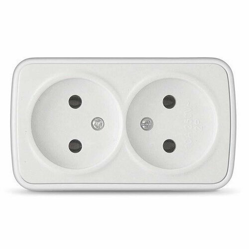 Розетка СОЮЗ Электра, 2 гнезда, без заземления открытой установки, 16А 220В, белая еврослот, 1 шт.