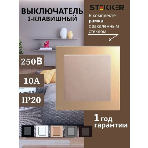 Выключатель STEKKER Катрин, одноклавишный, шампань, 250 В, 10 А