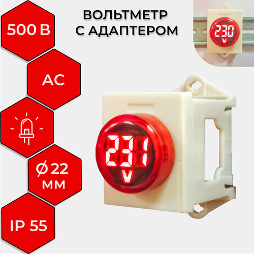 Вольтметр (индикатор напряжения) с адаптером на DIN-рейку VD22 70-500В Rexant