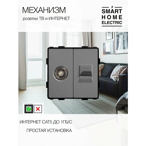 Модуль розетки, для телевизора, разъемы антенный и RJ-45 Cat5