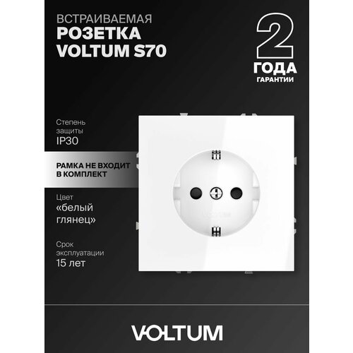 Розетка встраиваемая с заземлением и защитными шторками Voltum 16А глянцевый VLS040201