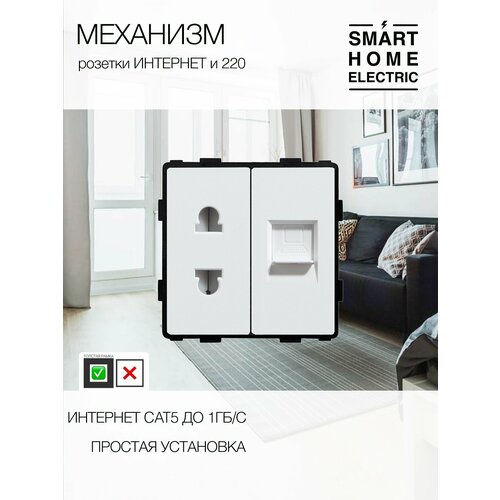 Модуль розетки, для телевизора, разъемы RJ-45 и евровилка