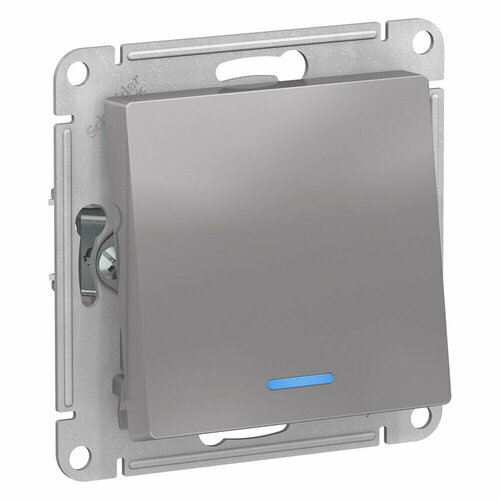Переключатель 1-клавишный алюминий с подсветкой, сх.6а, 10АХ, механизм Schneider Electric AtlasDesign (комплект 2шт)