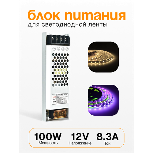 Блок питания для светодиодной ленты 12В 100Вт 164mm*55mm*22mm