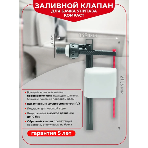 Клапан заливной Wirquin Kompact поршневого типа, боковой, пластик 3/8"