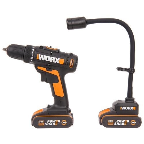 Комбо-набор: Дрель-шуруповерт аккумуляторная WORX WX101.9 +Фонарь аккумуляторный WORX WX028.9 20В, 2