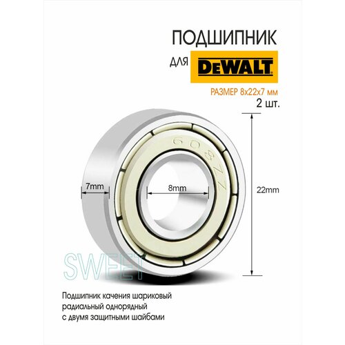 Комплект подшипников для болгарки (УШМ) аккумуляторной DeWalt DC415N TYPE 1, 2 шт.