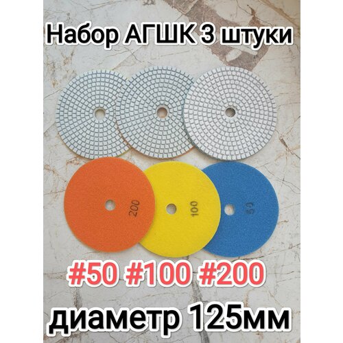 Алмазный Гибкий Шлифовальный Круг АГШК 125 мм.(Черепашка) набор 3 шт.№200,100,50.