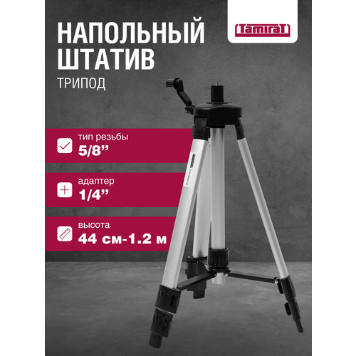 Напольный штатив трипод Tamirat 91 320 с уровнем 5/8’’, адаптер 1/4’’ (44 см-1.2 м)