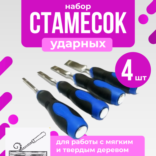 Набор стамесок по дереву плоский профиль из 4 предметов 6, 12, 18, 25 мм