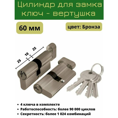 Личинка замка ключ-вертушка AX102/60 AB 60 мм (30x30) (25+10+25) цвет бронза (цилиндровый механизм, сердцевина)