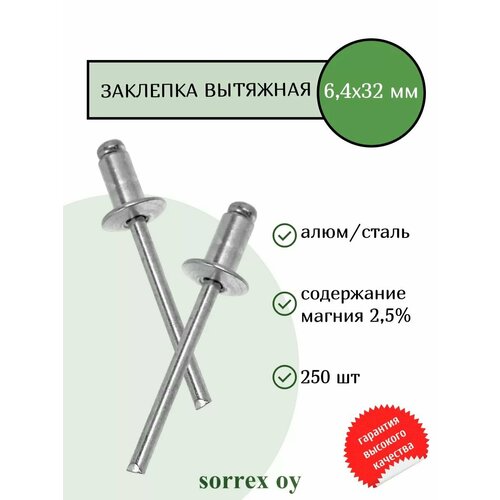 Заклепка вытяжная алюминий/сталь 6,4х32 Sorrex OY (250штук)