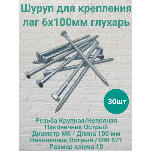 Шуруп для крепления лаг 6х100мм глухарь 30шт