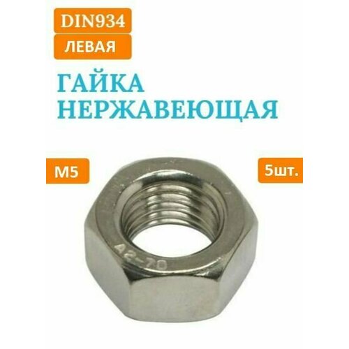 Гайка шестигранная DIN934 M5 левая резьба (Нержавейка), 5 шт.