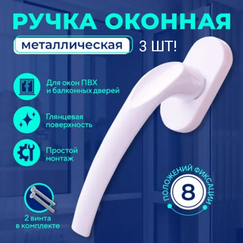 Ручка оконнная металлическая (белая) 3 шт! /Ручка на окно.