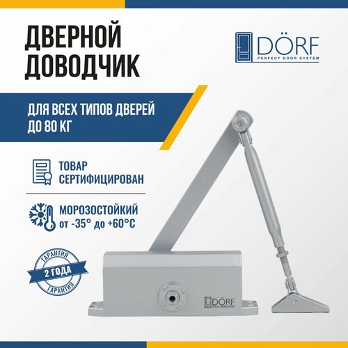 Доводчик дверной морозостойкий DORF, до 80 кг, L8223_silver