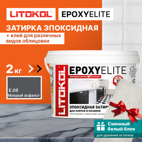 Затирка LITOKOL EpoxyElite E.06 Мокрый асфальт, 2 кг + 1 белый сменный блок