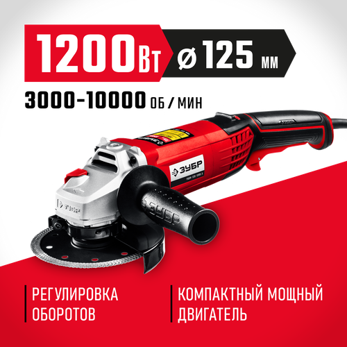 УШМ ЗУБР УШМ-125-1205 Э, 1200 Вт, 125 мм