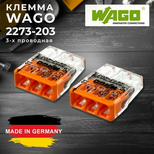 Клемма WAGO 2273-203 30 шт, без пасты соединительная 3-х проводная, набор клеммников ваго для проводов универсальных трехконтактных прозрачных, Германия