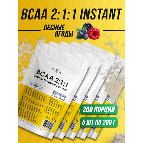 Незаменимые аминокислоты БЦАА для восстановления, рост мышц Atletic Food BCAA 2:1:1 Instant Flavored Powder (лесные ягоды) - 1000 г (5х200 г)