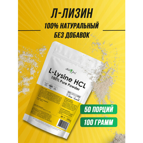 Atletic Food Л-Лизин 100% L-Lysine HCL Powder - 100 грамм, без вкуса