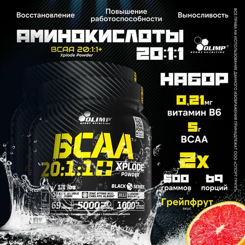 Аминокислоты Olimp Sport Nutrition BCAA 20:1:1+ XPLODE POWDER 500 грамм, Набор из 2 штук, Грейпфрут