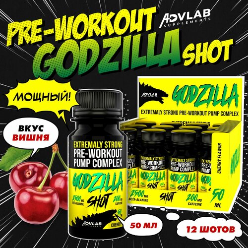 Предтренировочный комплекс Godzilla 12 шотов по 50мл для роста мышц , предтреник, энергетик, спортивное питание, психотик