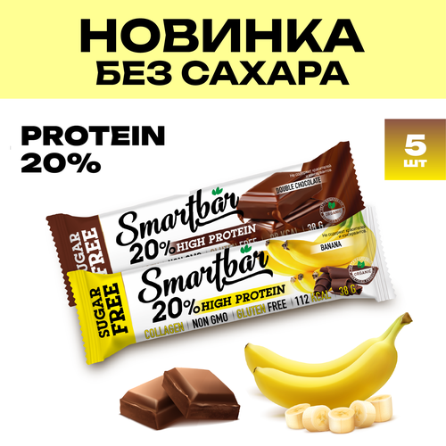 Протеиновые батончики без сахара Smartbar Protein 20% "Ассорти банан и шоколад" 38г (5 шт)
