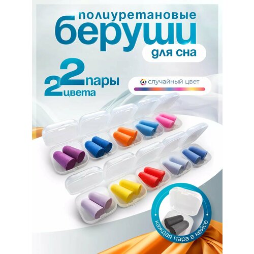 Противошумные беруши для сна, многоразовые, 2 пары каждая в кейсе, мультицвет