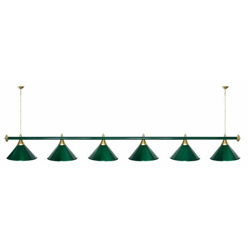 Лампа STARTBILLIARDS 6 пл. (плафоны зеленые, штанга зеленая, фурнитура золото)