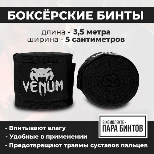 Боксерские бинты Venum Kontact, чёрные, 3.5 метра