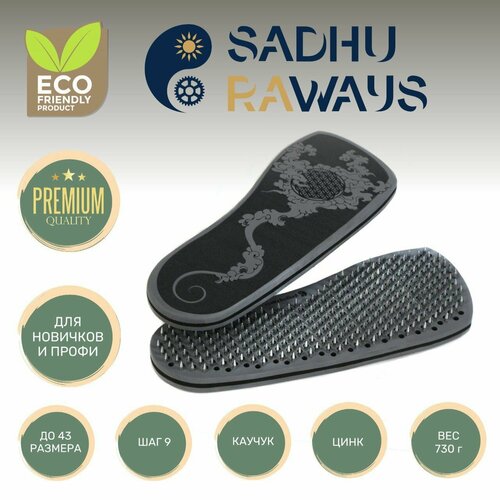 Доска Садху Ноги - Серая Арт. Nogi-std-zink-9-Ser, шаг 9, Цинк, каучук. Для начинающих и профи, в форме ног с цинковыми гвоздями и магнитами