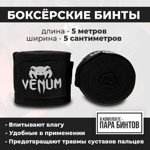 Боксерские бинты Venum Kontact, чёрные, 5 метров