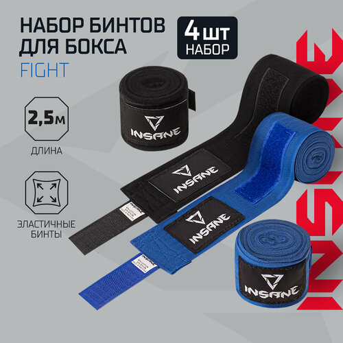 Набор бинт боксерский INSANE FIGHT IN23-HW500, хлопок/нейлон, черный/синий, 2,5 м, 2 пары