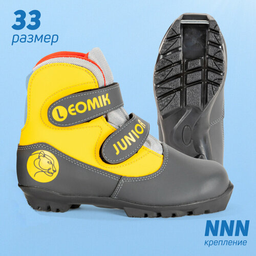 Лыжные ботинки Leomik Kids NNN размер 33, детские, серо-желтые