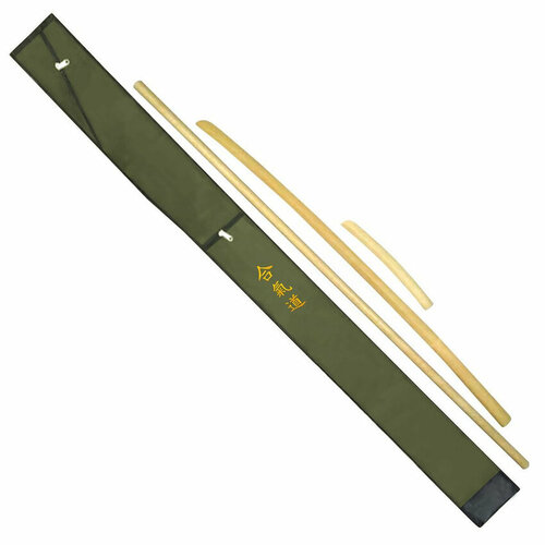 Комплект тренировочный из граба (боккен 91, дзё 120, танто 25, чехол зеленый с вышивкой Айкидо) для детей и подростков