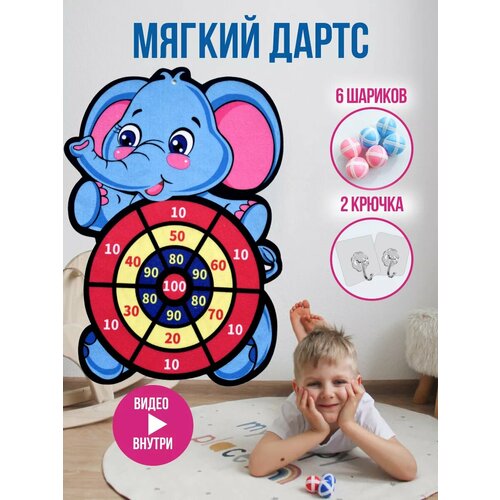 Детский дартс на липучках с шариками, мишень «Слоник»