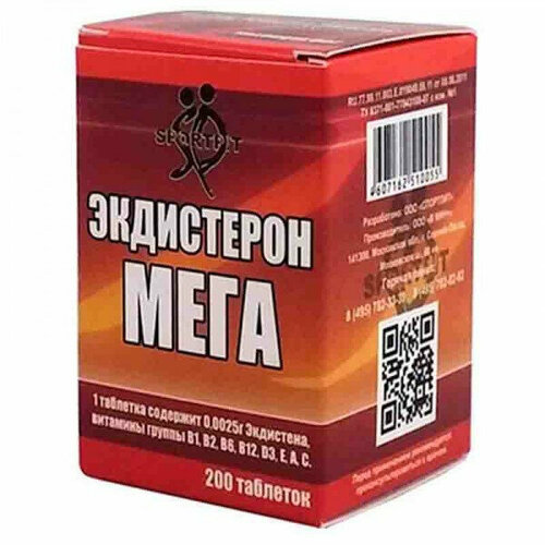 Экдистерон Мега Sportpit бустер тестостерона 200 таблеток