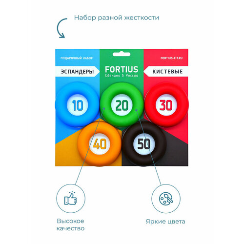 Набор кистевых эспандеров "Fortius", 5 шт. (10-50 кг) в пленке
