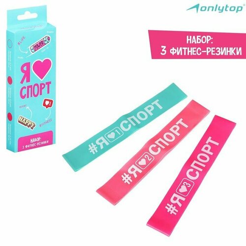 Набор фитнес-резинок ONLYTOP I like sport: нагрузка 10, 14, 22 кг, 3 шт, 30х5 см (комплект из 5 шт)