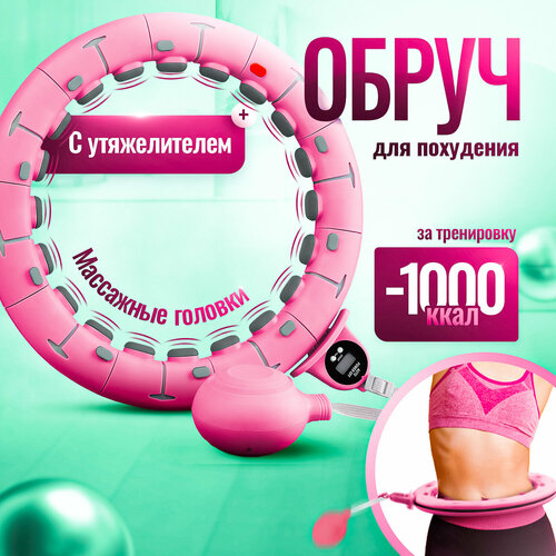 Обруч хулахуп для похудения утяжеленный 1,8 кг массажный, с массажными элементами, диаметр 102 см.