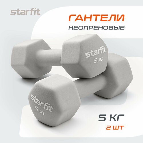 Гантель неопреновая STARFIT DB-201 5 кг, тепло-серый пастель, пара