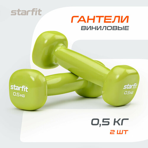 Гантели для фитнеса виниловые набор гантелей STARFIT DB-105 0,5 кг, лаймовый, 2 шт