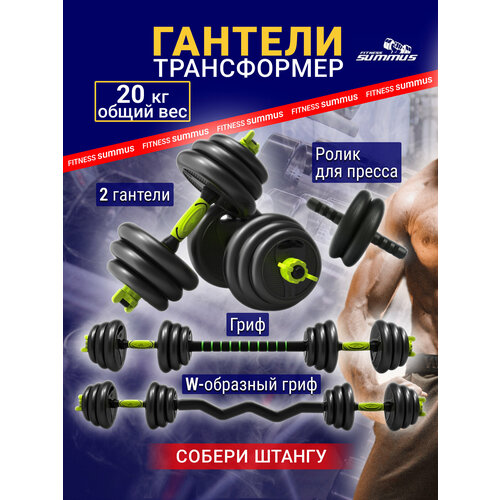 Набор разборных пластиковых гантелей Summus для фитнеса с коннектором для штанги прямым и W-образным 2 шт. по 10 кг, арт. 600-035