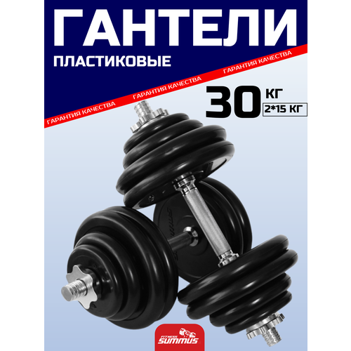 Гантели разборные пластик/цемент, 2 шт. по 15 кг, арт. 7930-303-2, набор гантелей 30кг черный