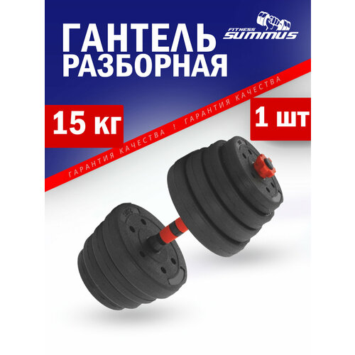 Разборная (наборная) гантель для дома и спортивного зала Summus пластик/цемент 1 шт. по 15 кг, d-25мм, арт. 600-064