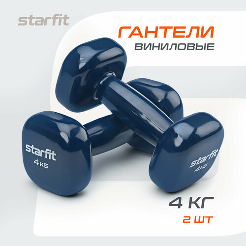 Гантели для фитнеса виниловые набор гантелей STARFIT DB-105 4 кг, темно-синий, 2 шт