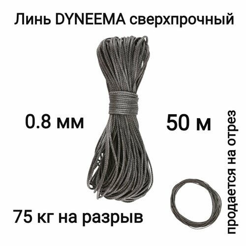 Линь Dyneema, для подводного ружья, охоты, графит 0.8 мм нагрузка 75 кг длина 50 метров. Narwhal