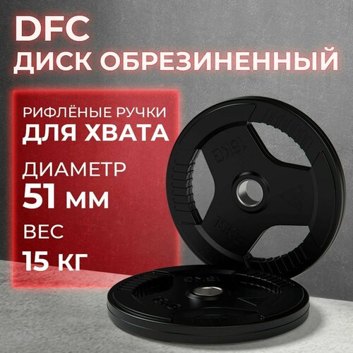 Диск обрезиненный с хватом DFC 15 кг / диаметр 51 мм